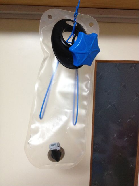 バックパックに入れる、キャメルバック。ハリガネハンガー を加工して完全乾燥です。