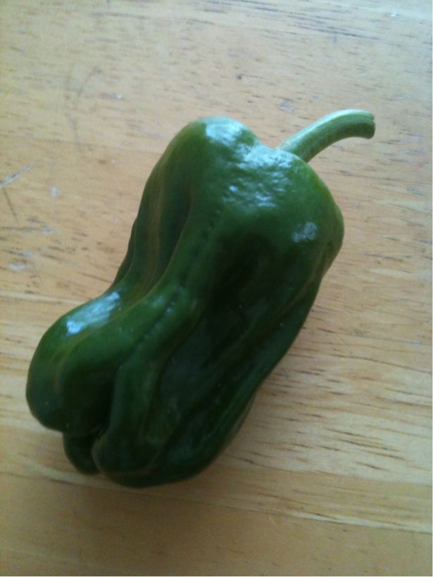 我が家の野菜、完全無農薬野地農法のピーマン初収穫です。